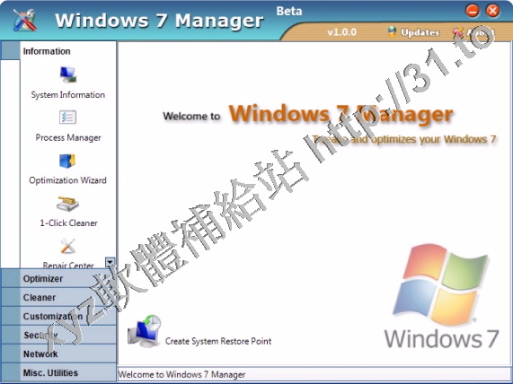 • Yamicsoft Windows 7 Manager v2.0.8 英文正式版(Widnows 7 總管是優化和設置軟體)
